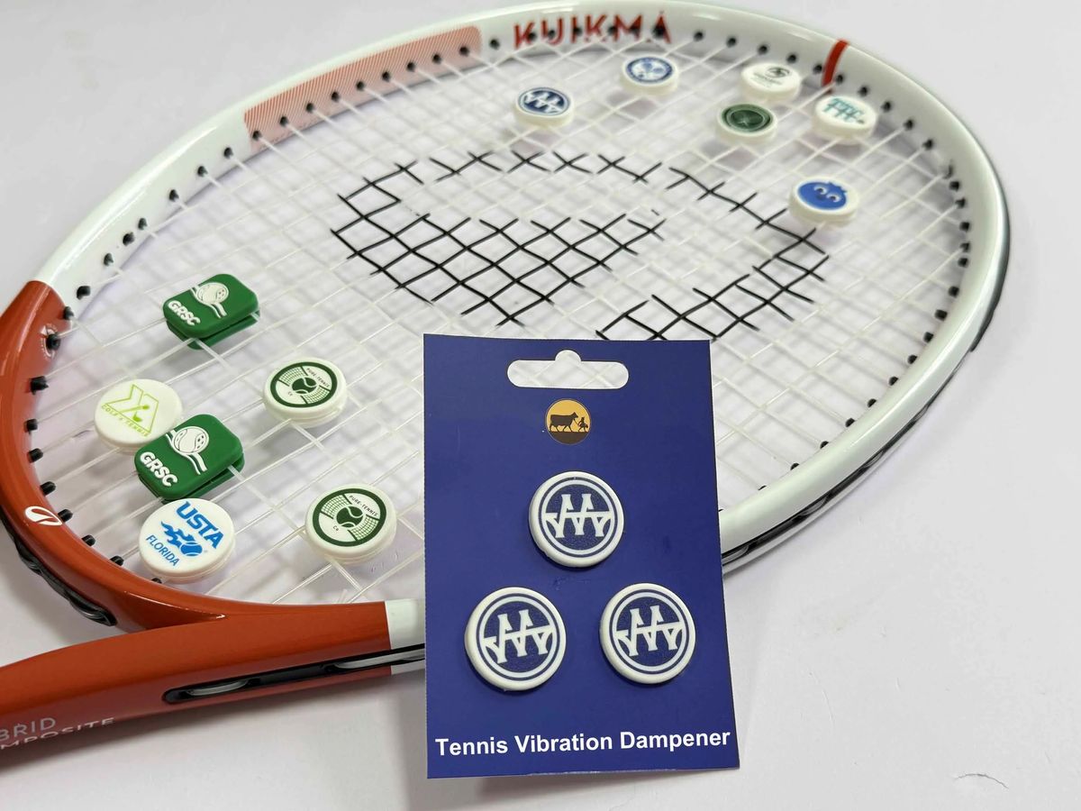 This 3-pack of silicone tennis racket vibration dampeners offers players enhanced comfort and reduced string vibration for a better playing experience. Made of high-quality, flexible silicone, these dampeners are designed to minimize arm fatigue and improve shot control. Each set comes securely packed on a retail-ready paper card, making it ideal for sporting goods stores, promotional gifts, or custom branding. Easy to install and compatible with most standard tennis rackets, these dampeners combine performance and style.